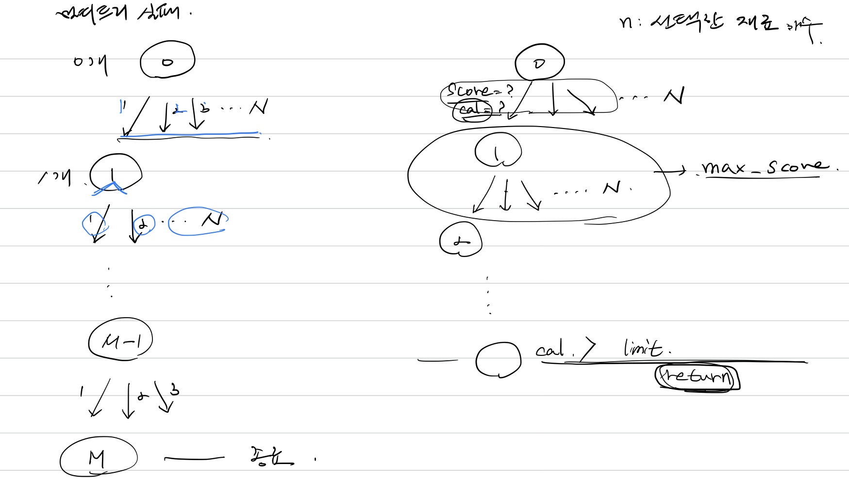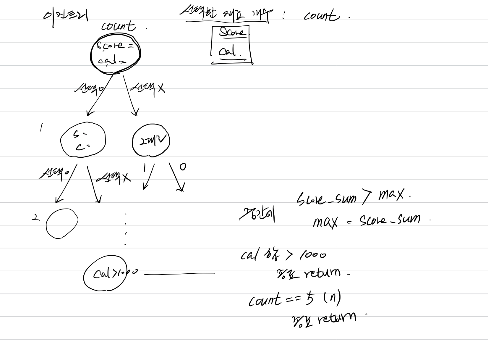 dfs(count+1, score_sum+score_list[count], cal_sum+cal_list[count]) #선택o