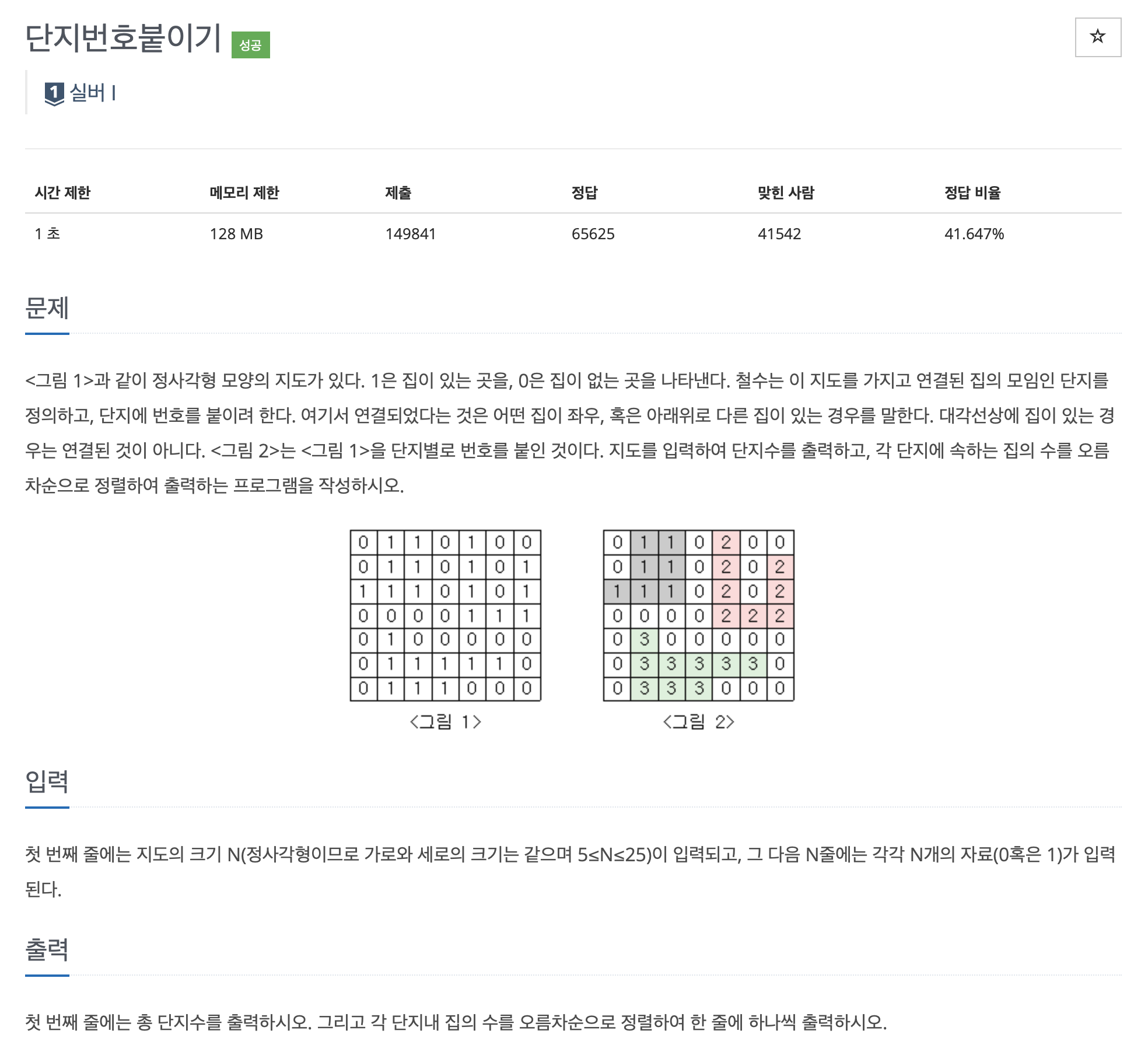 - dfs을 통해 지도에서 붙어있는 집(1)의 개수를 카운트할 수 있다.