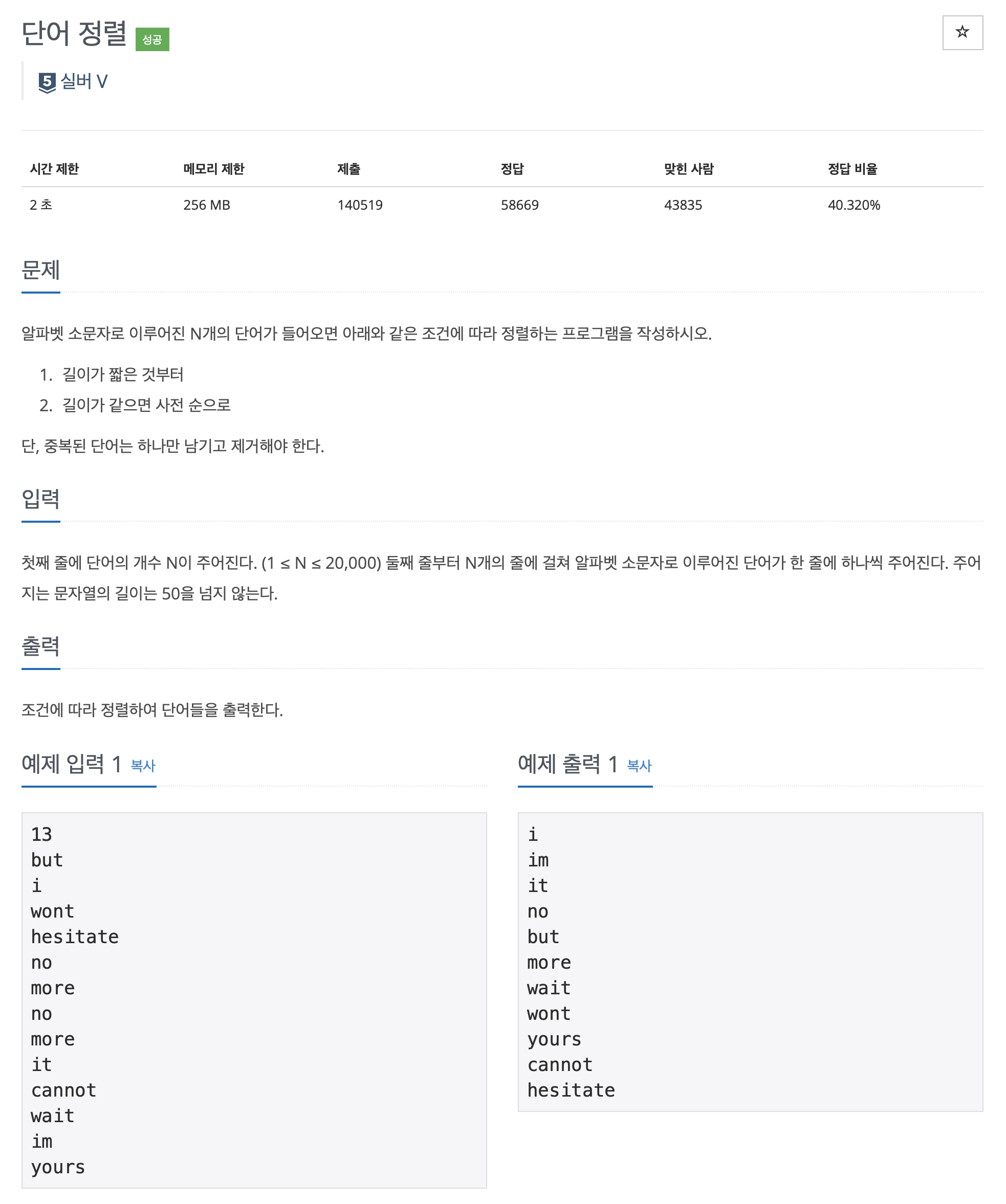 word_list.sort() #문자열을 요소로 갖는 리스트를 정렬하면, 길이가 아닌 앞글자의 사전 순으로 정렬된다.
