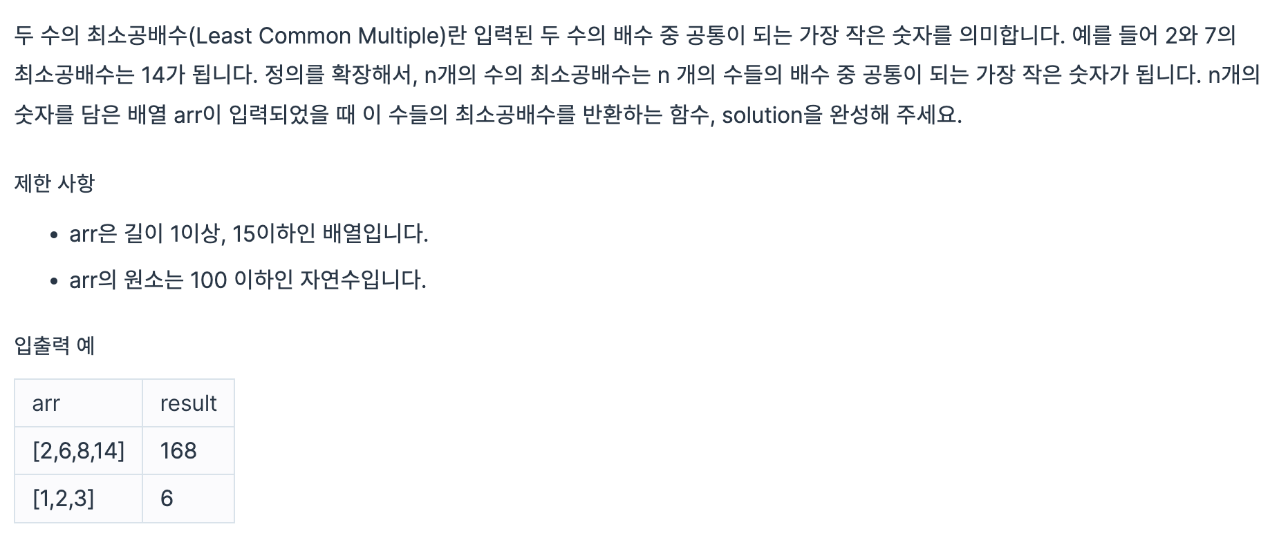 console.log(answer); // 최소공배수가 출력됨
