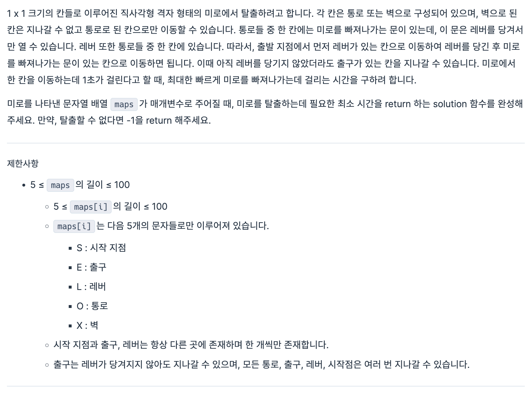 - 레버가 있는 칸까지 탐색한 후, 도착 지점까지 있는 칸까지 탐색한다.