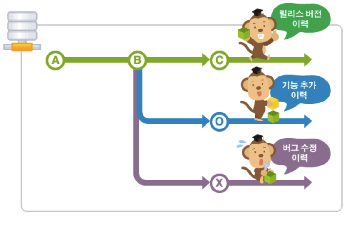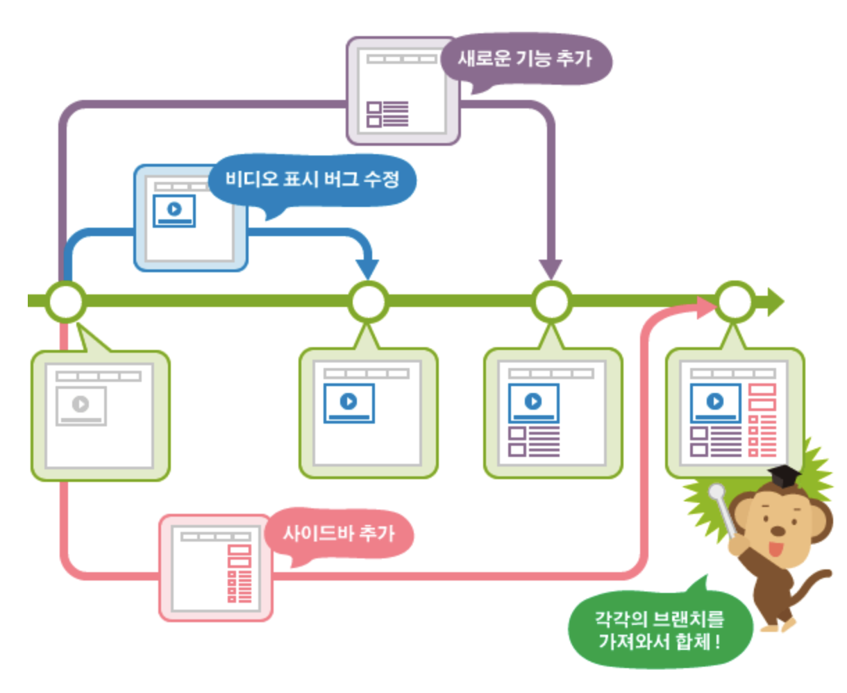 브랜치란 독립적으로 어떤 작업을 진행하기 위한 개념이다. 필요에 의해 만들어지는 각각의 브랜치는 다른 브랜치의 영향을 받지 않아 여러 작업을 동시에 진행할 수 있다. 각자 작업을 진행한 후 작업이 끝난 사람은 브랜치를 메인 브랜치에 merge한다.