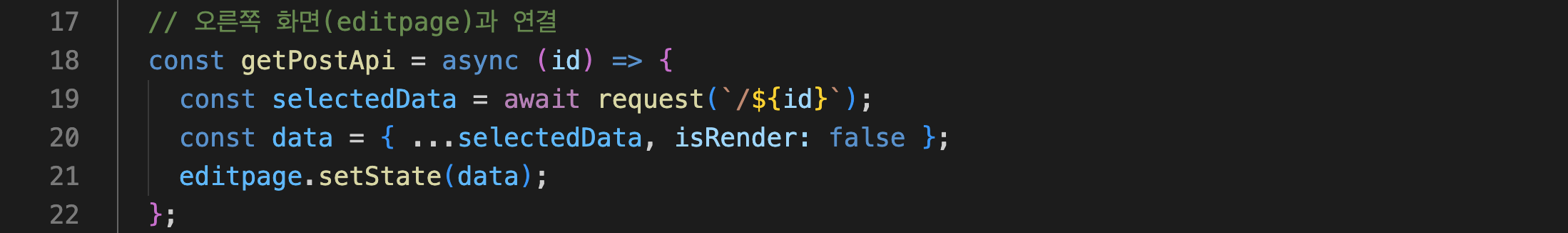 - 화면 좌측의 Documents를 클릭하면 오른쪽 Edit-page 영역에 해당 Document의 title과 content를 렌더링했다.
