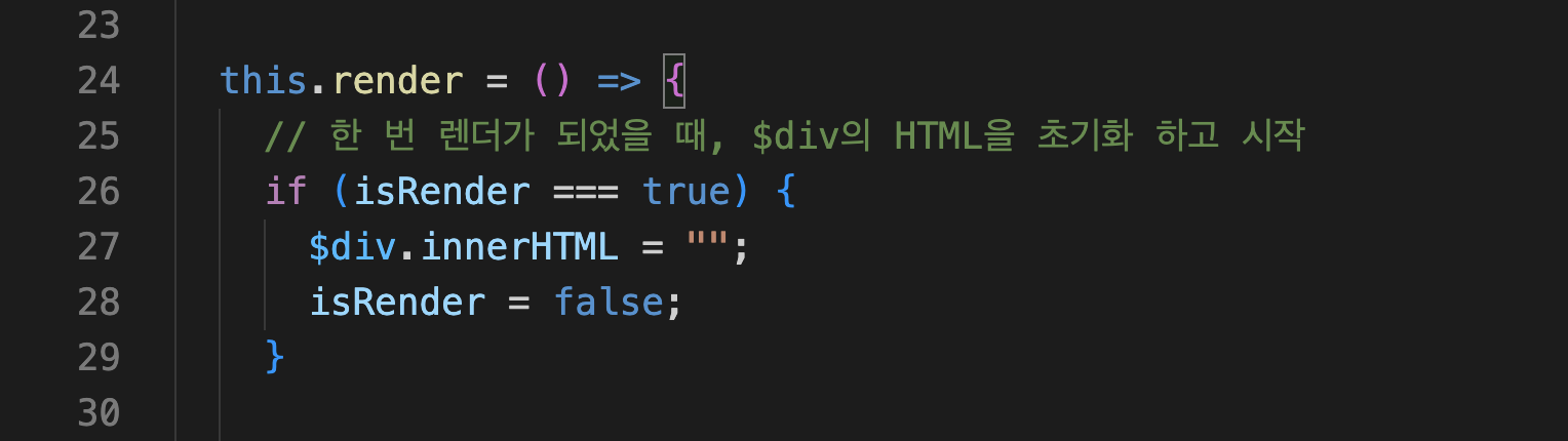 한 번 렌더가 되었을 때는 target 요소인 div의 자식 요소들을 초기화하고 Documents 목록을 렌더하는 것이다. 이 방법은 올바른 방법인지는 모르겠다. 현재는 코드 리뷰 확인사항에 요청해둔 상태이다.