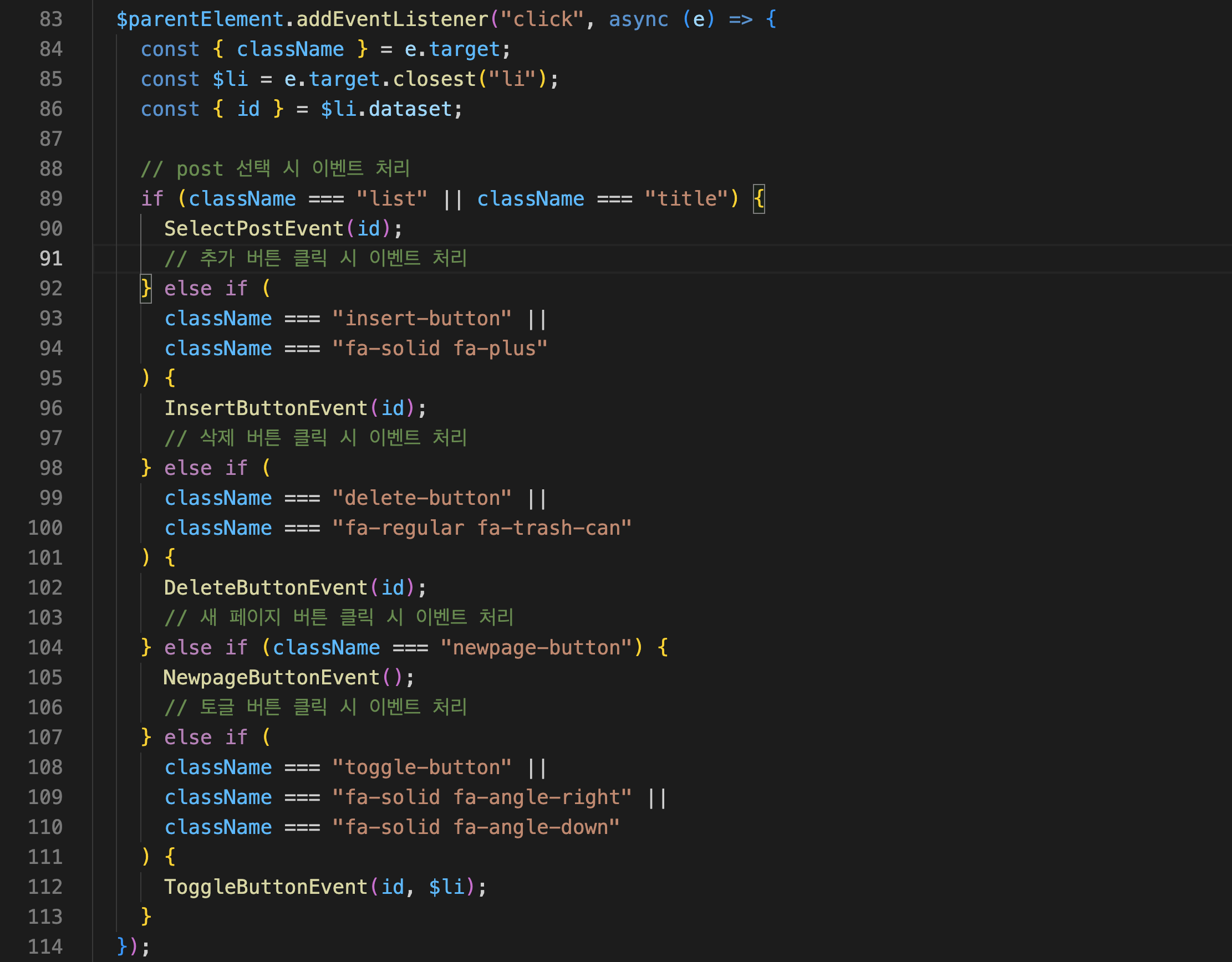 ▪︎ 여러 이벤트를 처리하기 위해 이벤트 위임을 활용했다.