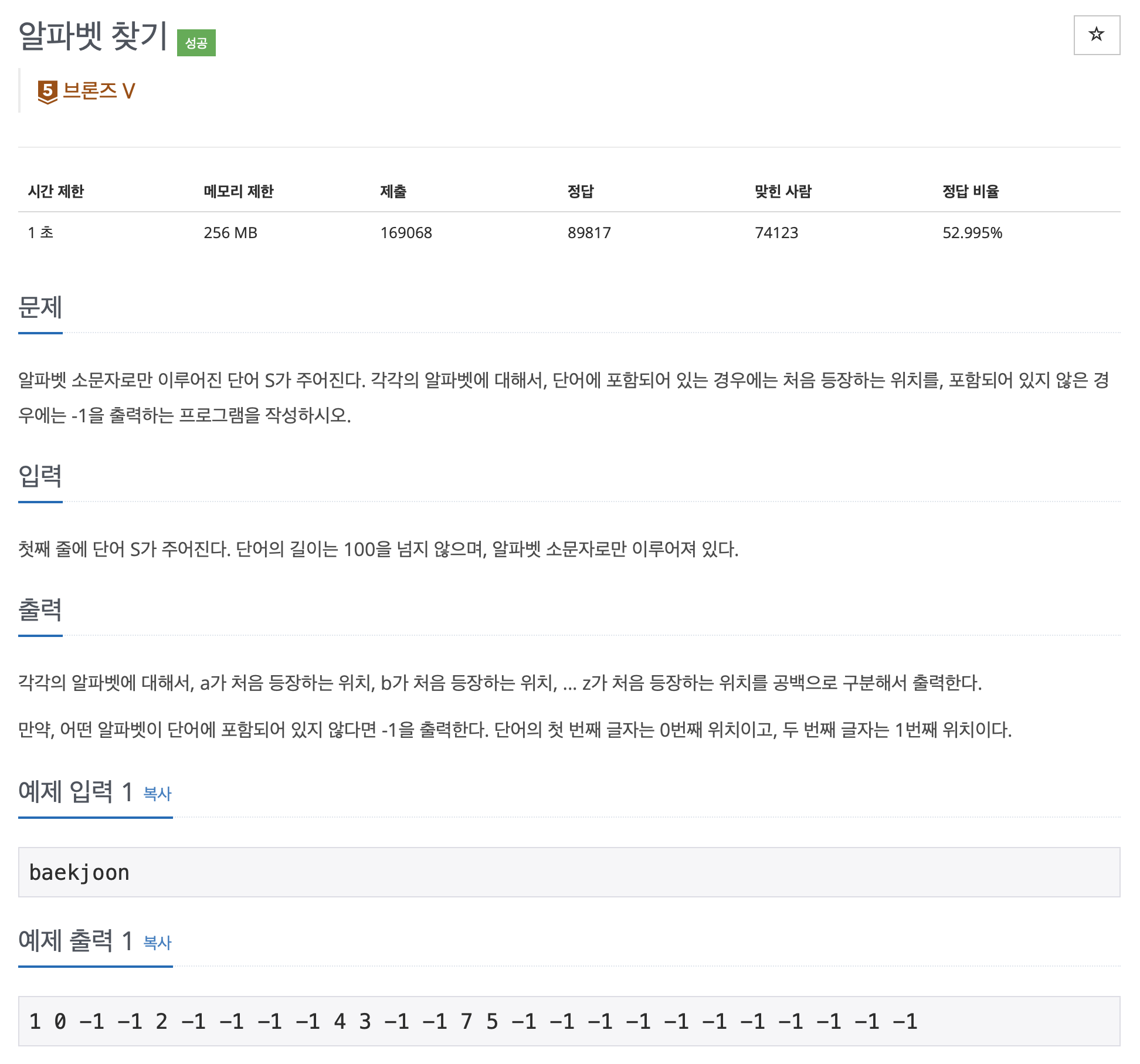 이게 왜 브론즈5인지 이해를 못하겠는 상황. 아스키 코드를 생각하고 있지 못한다면 꼼짝없이 당할 수 밖에 없는 문제..