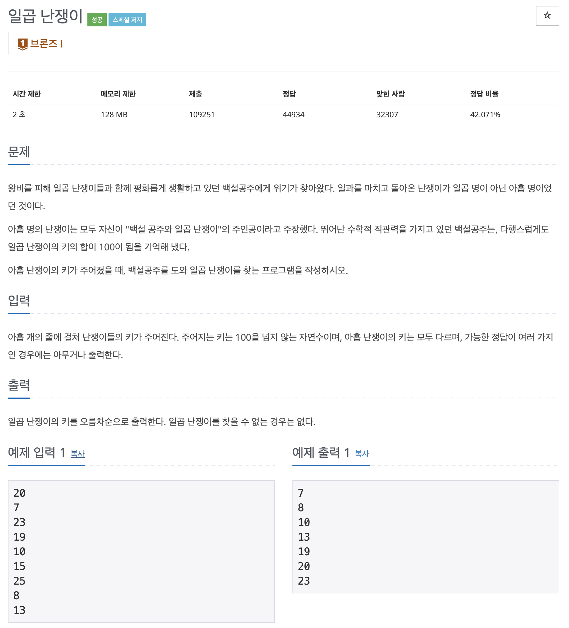 [백준] 2309 일곱 난쟁이 (브론즈1) / pop(), remove(), clear(), del 정리