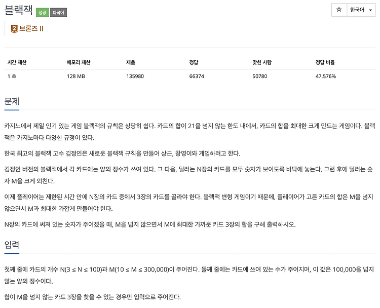 3중 for문을 사용해서 시간초과가 뜨지 않을까 걱정했지만, 카드의 개수 N 의 범위가 최대 100까지여서 에러가 뜨지 않았다.
