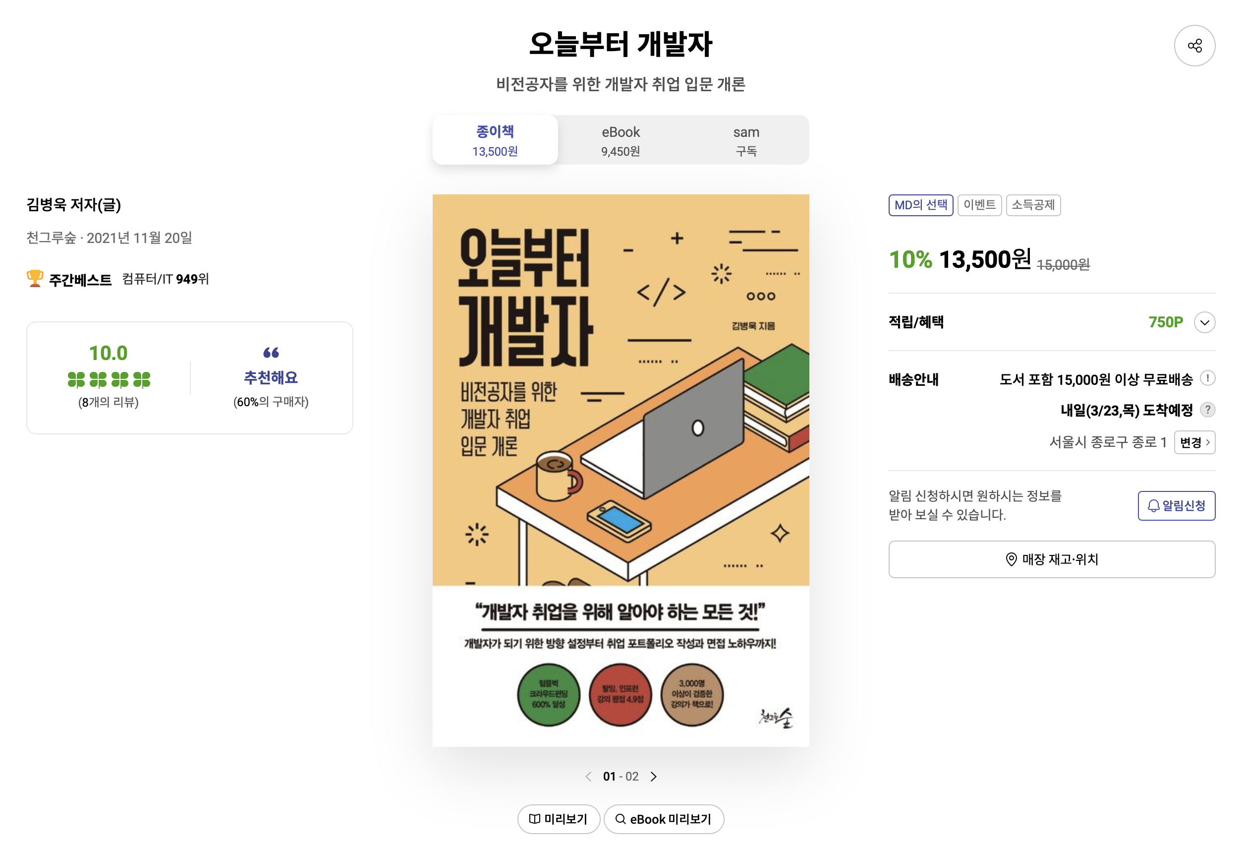 오늘 내가 서점에 가서 읽은 첫 번째 책은 <오늘부터 개발자> 라는 책이다.