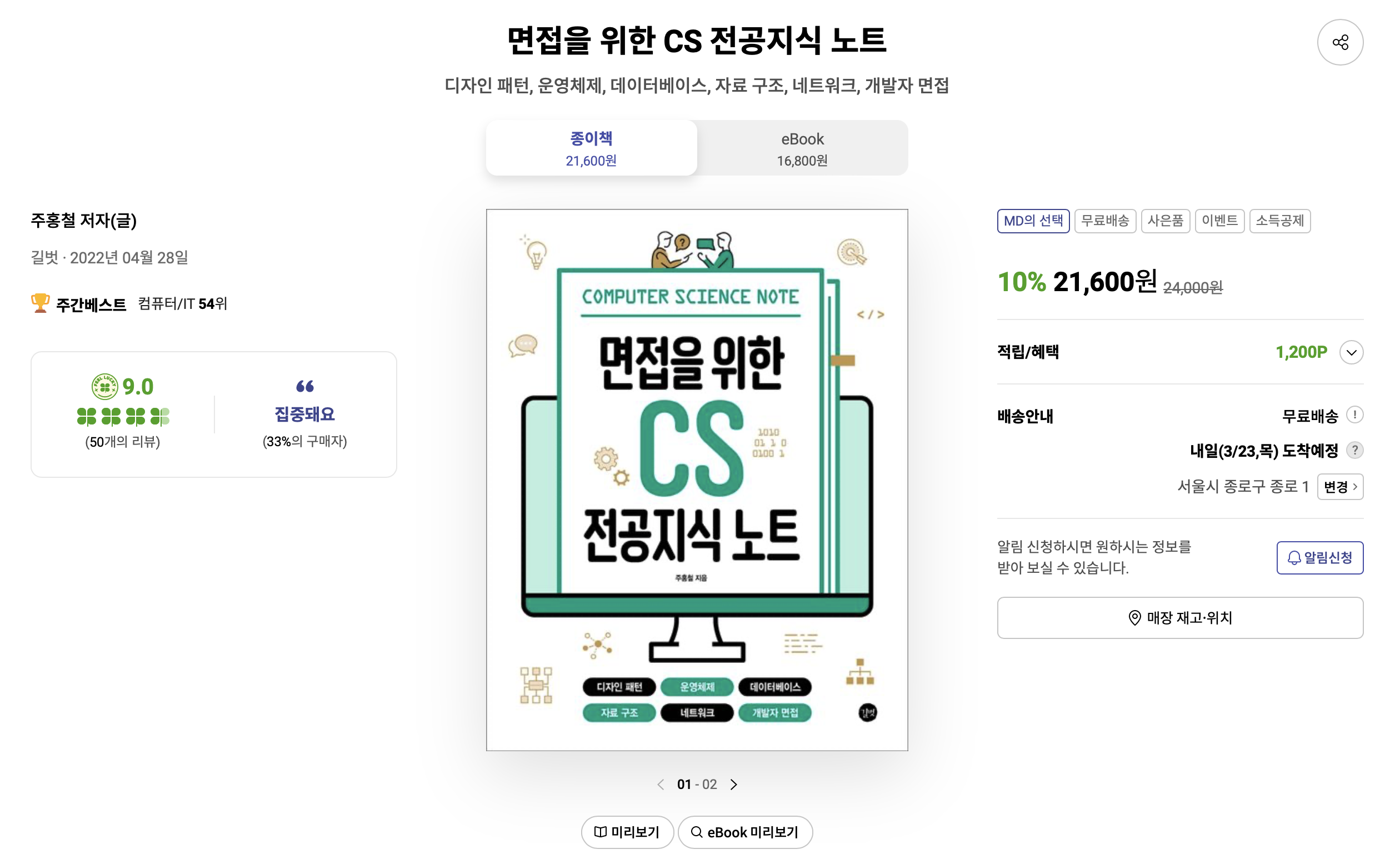 인터넷으로 CS 지식을 공부하다가 그 내용이 너무 광범위해서 서점에 방문하여 이 책을 대충 훑어보았다. 유명한 책이라고 하여 혹시 나에게 도움이 될 수 있을까?라는 마음으로 읽어보았는데 그저 그랬다. 그냥 인터넷에 있는 내용들을 정리한 것이 전부인 것 같다.