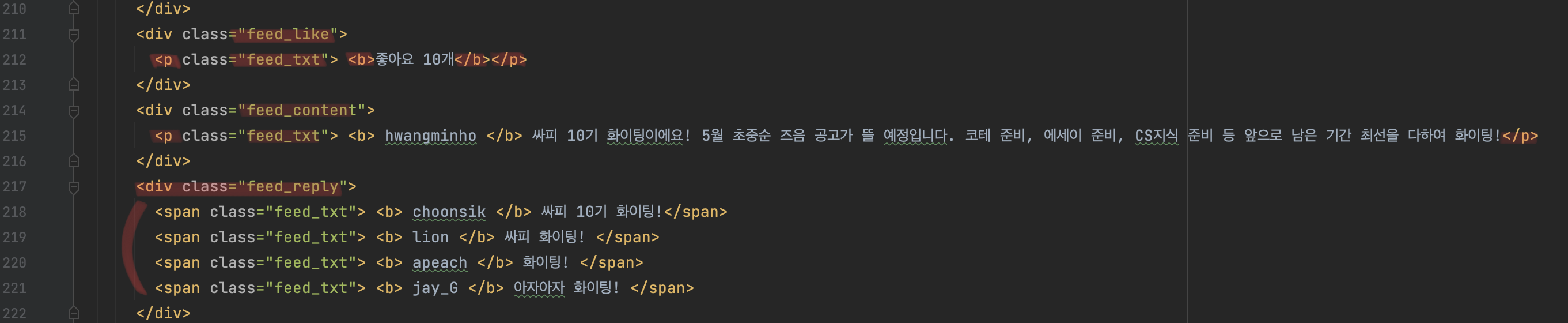 - feed_name.txt : ํ๋กํ ์ด๋ฆ์ ํด๋นํ๋ ์์ฑ์ด๋ฉฐ, font-weight๋ฅผ bold๋ก ์ค์, ๋๊บผ์ด ๊ธ์จ๋ก ํ์๋๋๋ก ํ๋ค.