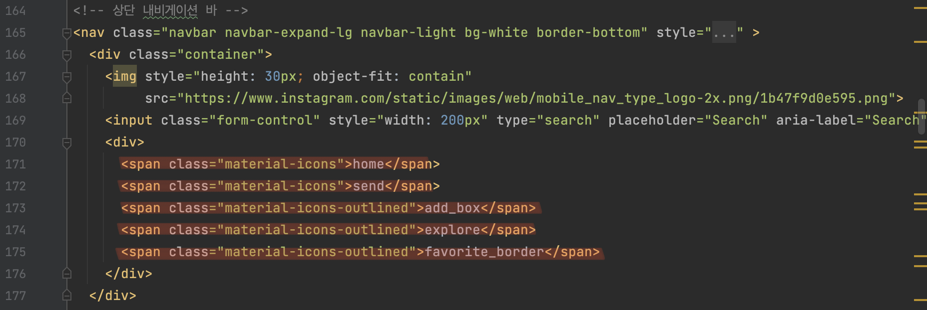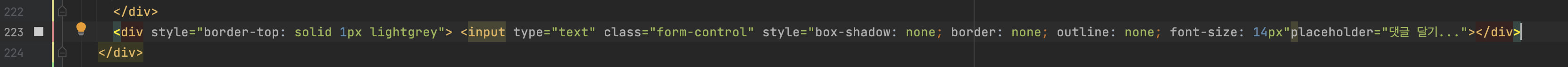 ๊ฒ์์ฐฝ์ ๋ถํธ์คํธ๋ฉ์ ๋ด๋น ๋ฐ ์์ค ์ฝ๋๋ฅผ ์ฝ๊ฐ๋ง ์์ ํ๋ฉด ๋ง๋ค ์ ์๋ค. ์ด ๋, css๋ก width๋ฅผ 200px์ ์ฃผ์๋๋ฐ, ์ด๊ฑธ ํ์ง ์์ผ๋ฉด ๋ด๋น ์ ์ฒด๊ฐ ๊ฒ์์ฐฝ์ด ๋๋ค. width์ ํ์๋ก ์ง์ ํด์ฃผ์ด์ผ ํ๊ณ , ์ ๋นํ ๊ฐ๋ก ๊ธธ์ด๋ฅผ ์ ํด์ width์ ๋ฃ์ด์ค๋ค.