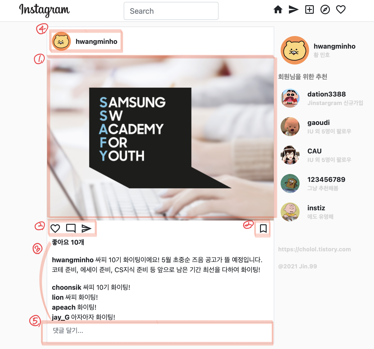 ์ด์ ์ง์ง ์ธ์คํ๊ทธ๋จ ํผ๋ํ๋ฉด์ฒ๋ผ ๋ณด์ด๊ธฐ ์ํด ๋จผ์ ์ผ์ชฝ ํ๋ฉด์ ๋ง๋ค์ด๋ณด๋๋ก ํ์. ์๋์ ๋ค์๊ณผ ๊ฐ์ด ์์๋ฅผ ์ ํ๋ค.