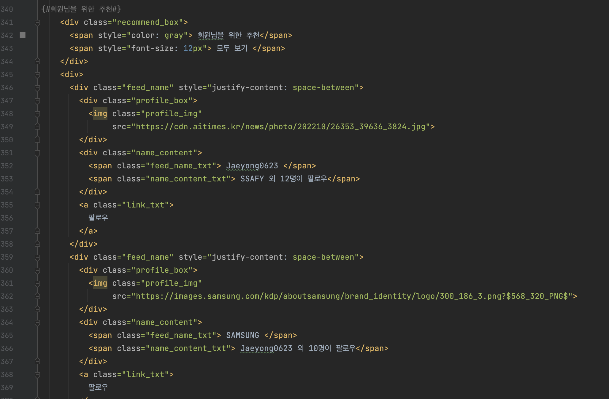 ์ธ์คํ๊ทธ๋จ์ ์ค๋ฅธ์ชฝ ํ๋ฉด์ ์ถ์ฒ ํ๋ฉด์ ๋ง๋๋ ๊ฒ ์ญ์ ์ด์ ๊ณผ ๋์ผํ๋ค. ์ด์ ์ <div>์์ ๋ด์ฉ๋ค์ ๋ณต์ฌํ์ฌ, ๋ฐ์ ๋ถ์ฌ๋ฃ๊ณ ์์ ๋กญ๊ฒ ๋ง๋ค๋ฉด ๋๋ค. ๋๋ 5๊ฐ๋ฅผ ๋ง๋ค์๋ค.