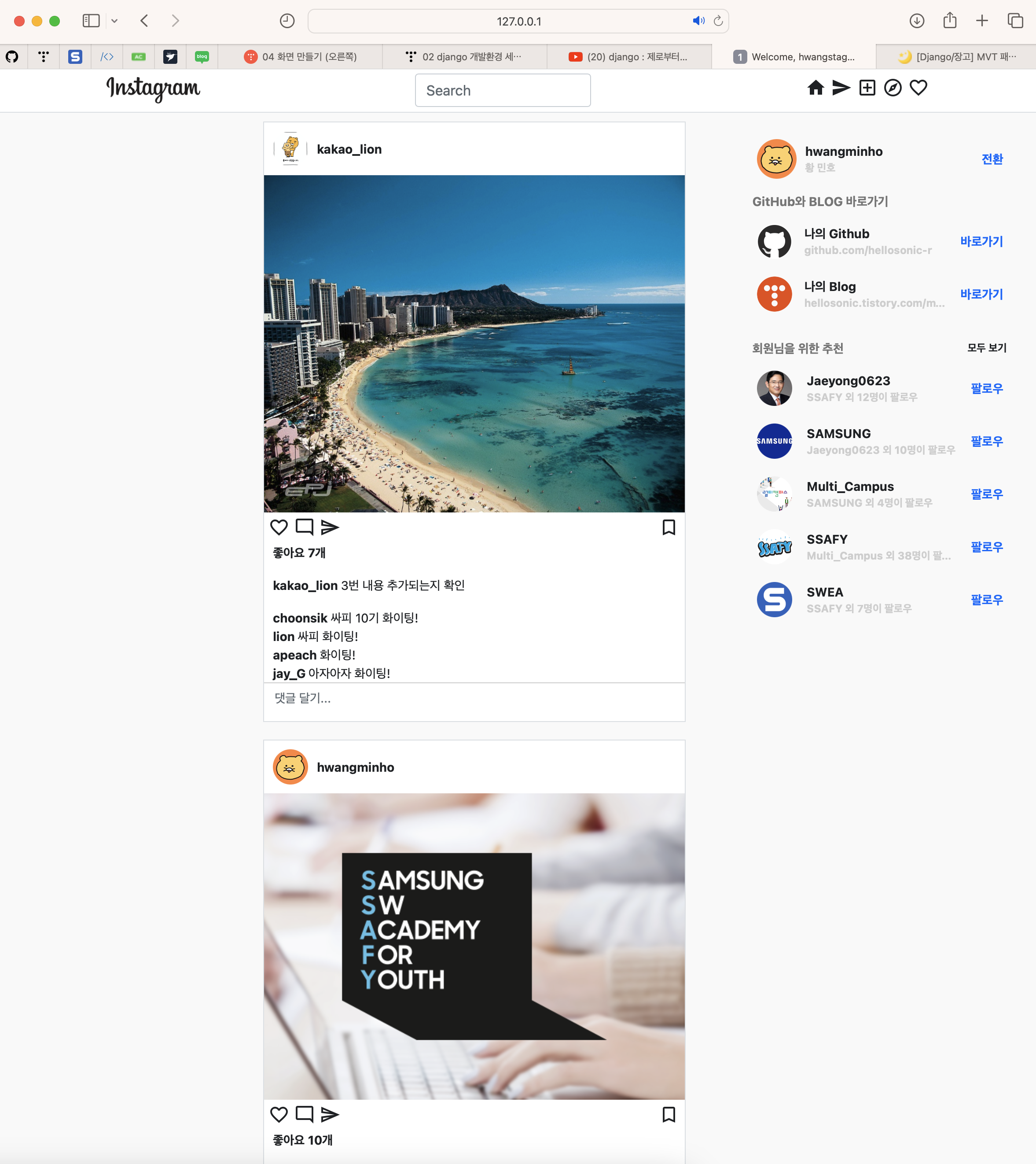 | [ToyPJ/Python] django 로 인스타그램 만들기 - 04 화면 만들기 (오른쪽) (0) | 2023.03.29 |