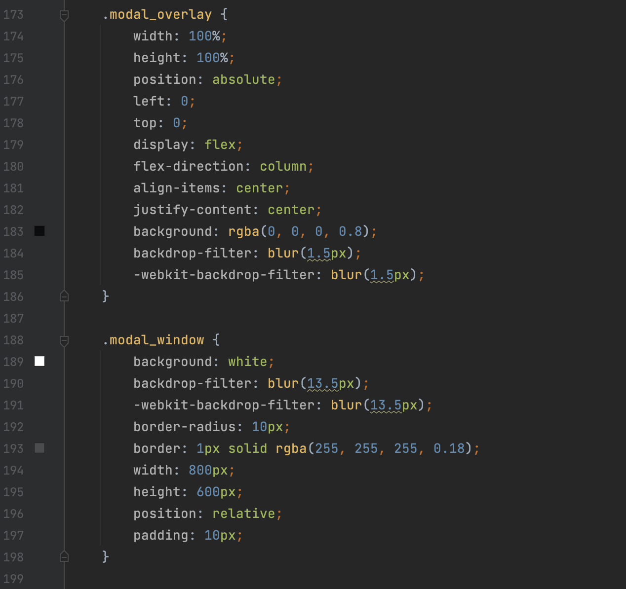 ์คํ์ํค๊ฒ ๋๋ฉด ๋น ๋ชจ๋ฌ์ฐฝ์ด ์์ฑ๋๋๋ฐ ํญ์ ๋ ์๊ฒ ๋๋๋ฐ, ์ด ๋ ์์ฑํ css์ modal_overlay ์์ฑ์ display ์์ฑ๊ฐ์ none์ผ๋ก ์ฃผ๊ฒ ๋๋ฉด ๋ชจ๋ฌ์ฐฝ์ด ๋ณด์ด์ง ์๊ฒ ๋๋ค.