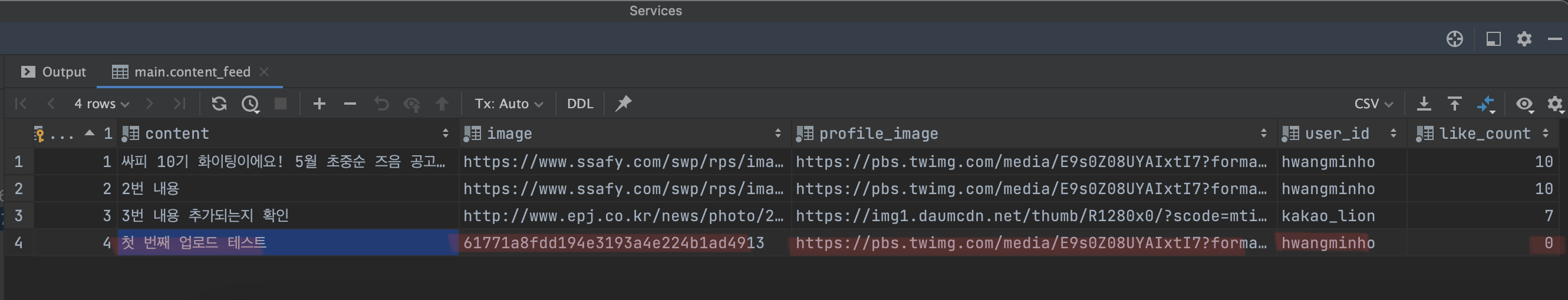 - Feed 객체를 create 하게 되면, 자동으로 DB에 한 줄이 생성이 된다.