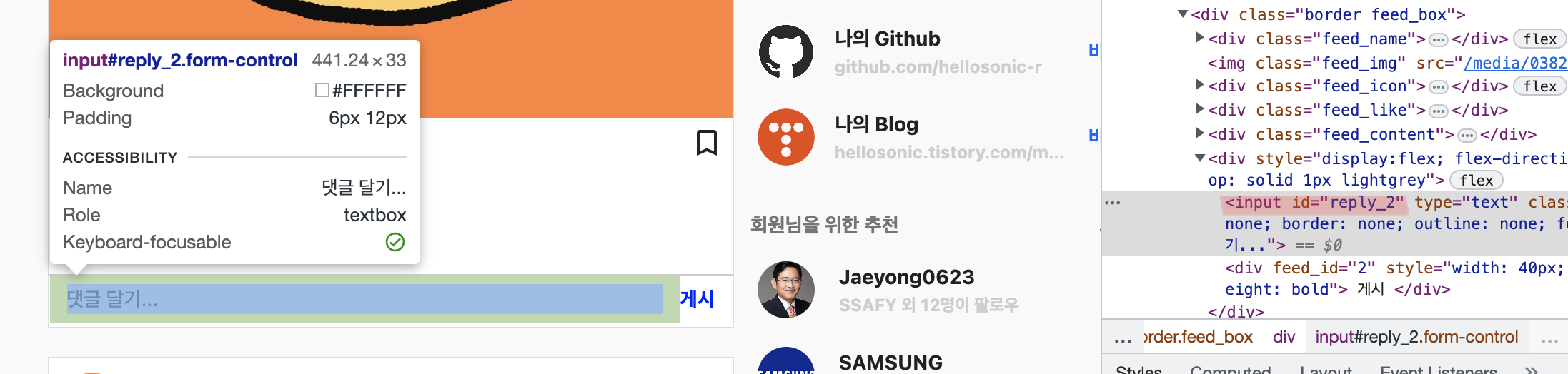 그렇다면 이제 각 피드의 "댓글 달기" 창에도 "이 피드에 댓글 달고 있어~~" 라고 id를 지정해줘야 한다.
