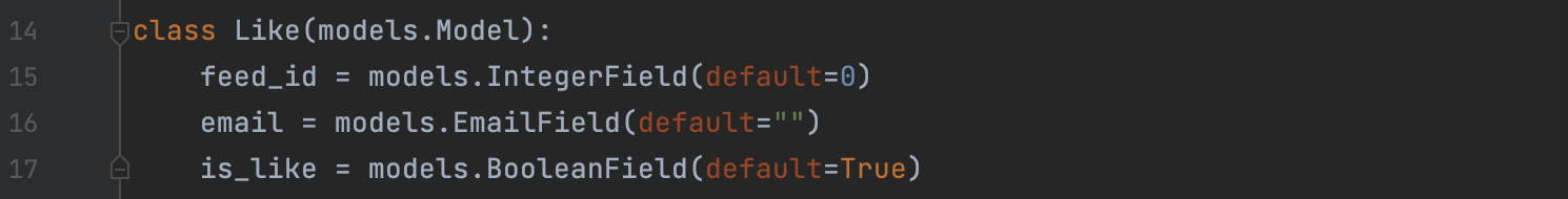 좋아요 모델은 앞에서 이미 만들었다. 댓글 달기와 마찬가지로 좋아요를 누르면 피드 아이디가 올라오고 세션 정보에서 이메일을 끌어 오고, 처음 누르게 되면 True, 다시 누르게 되면 False가 되도록 작성하면 된다.