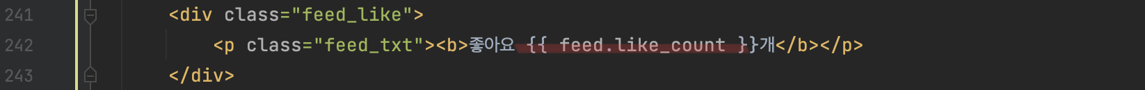 이제 feed_list에 저장된 like_count개수 만큼 피드에 좋아요를 표시할 수 있도록 html을 수정해주면 된다.