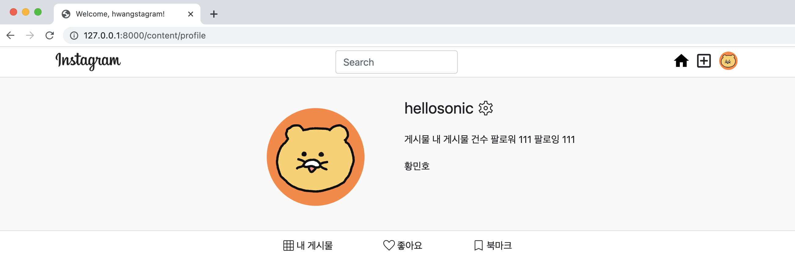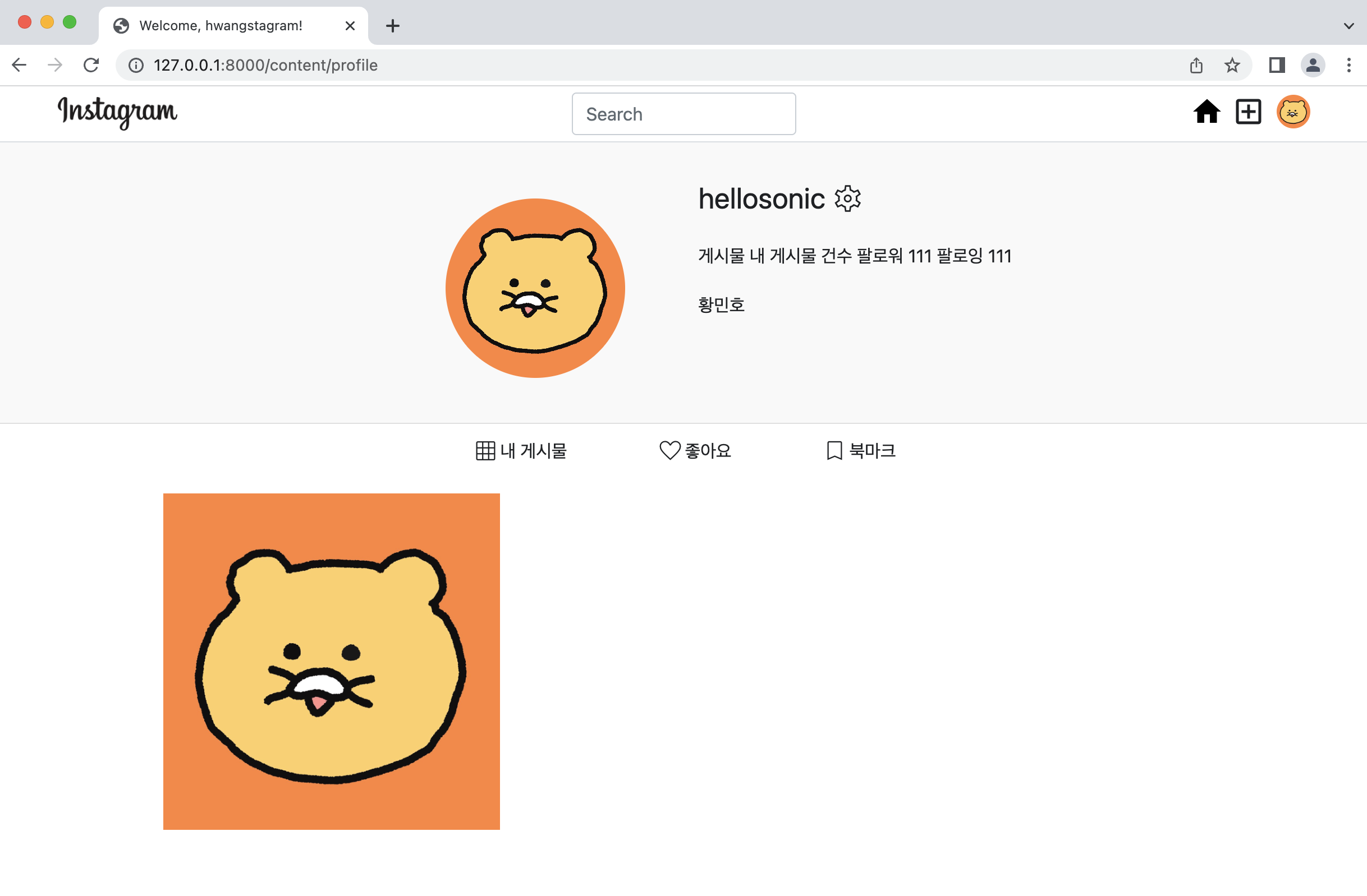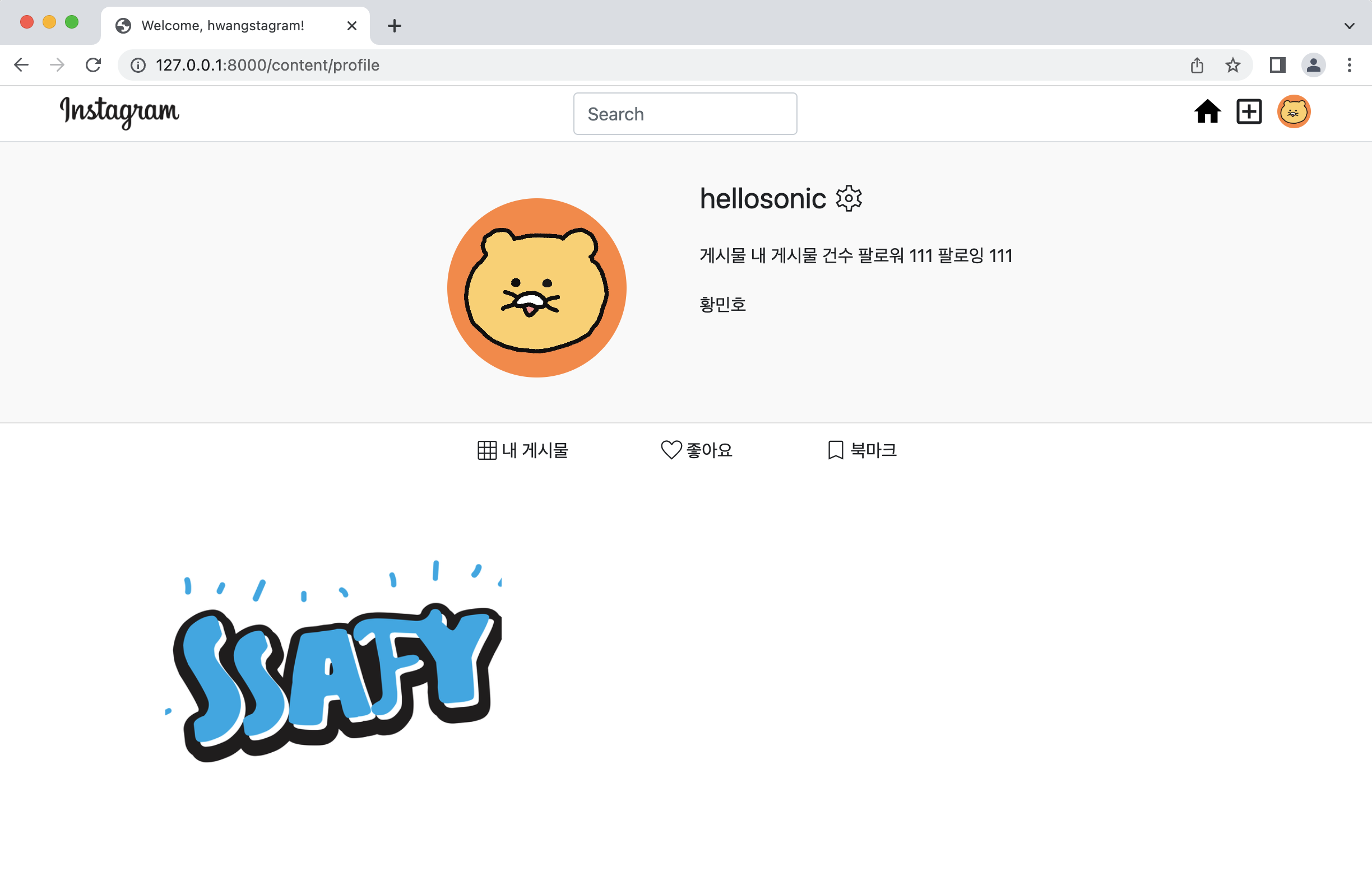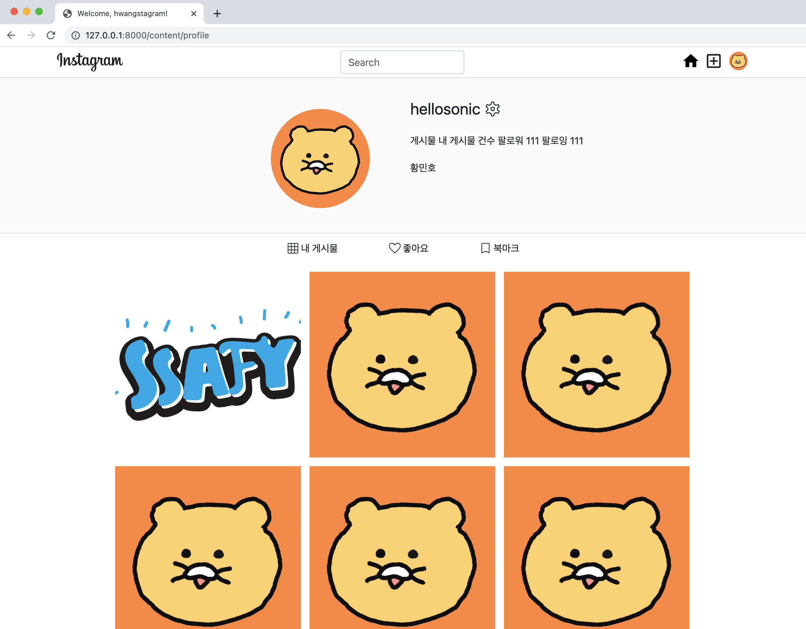 이제 좋아요, 북마크 탭도 html을 작성해주면 된다. 내 게시물 탭과 작성 방법은 동일하나, default로는 내 게시물에 해당하는 피드 리스트만 보여줘야 하므로 display: none 속성을 줘서 숨긴다.