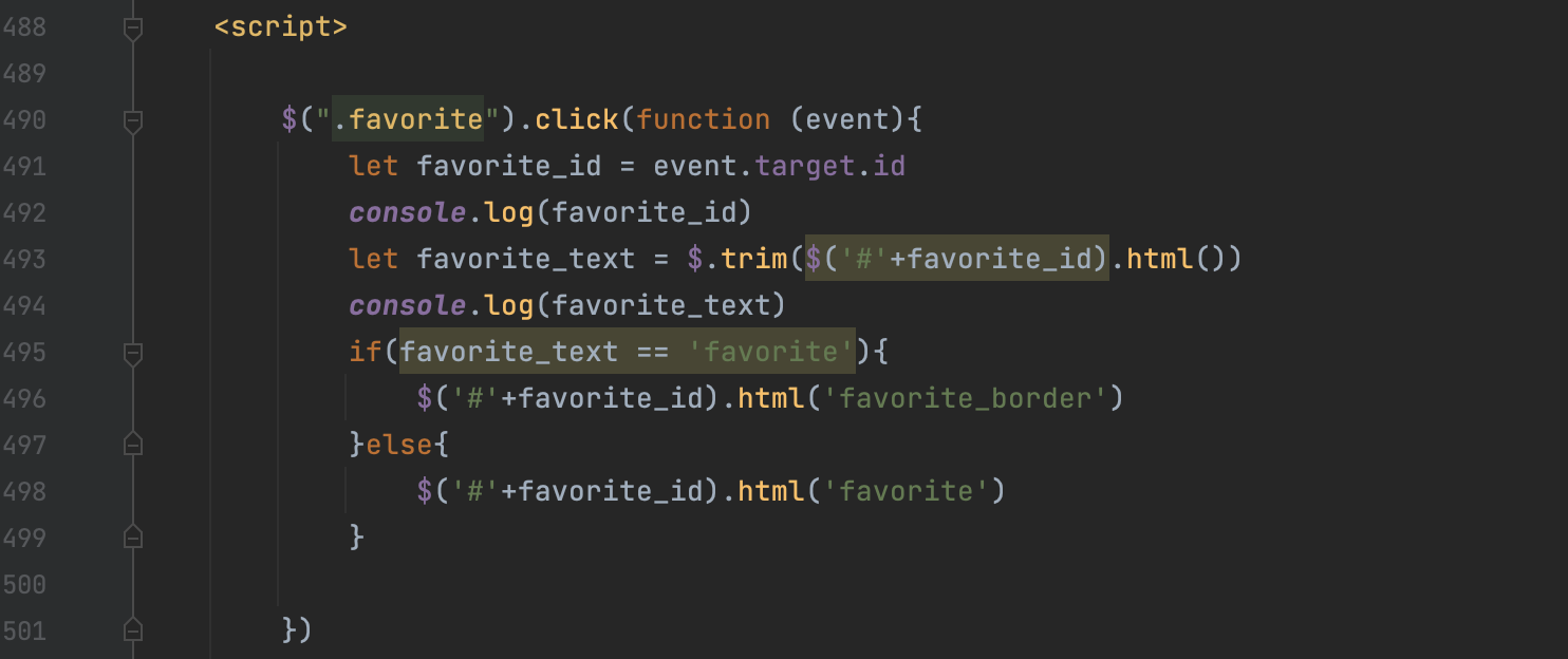 좋아요 누른 여부(is_liked)에 따라서 하트를 다르게 했다면, 좋아요 버튼을 실제로 눌렀을 때 화면에 표시되는 하트가 달라지도록 해야한다. 특정 동작(버튼 클릭)을 통해 브라우저를 변화시키고 싶은 것이므로 역시 제이쿼리를 활용하면 된다.